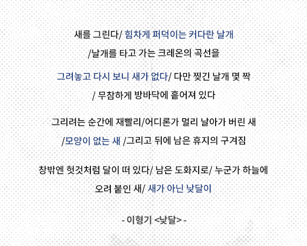 ์ด ์ง์ ์์ ํจ๊ป ๋ ์ฌ๋ฆด ๋งํ ์ํ์ด ์์ต๋๋ค. ๋ฐ๋ก ์ดํ๊ธฐ ์์ธ์ <๋ฎ๋ฌ>์ธ๋ฐ์. ์์ธ์ โํ์ฐจ๊ฒ ํผ๋์ด๋ ์ปค๋ค๋ ๋ ๊ฐโ๋ฅผ ๊ฐ์ง ์๋ฅผ ๊ทธ๋ฆฌ๋ ค ํ์ง๋ง, ๊ทธ๋ฆฌ๋ ค๋ ์๊ฐ ์๋ ์ฌ๋ผ์ง๊ณ โ์ง์ ๋ ๊ฐ ๋ช ์งโ๋ง ๋จ์ต๋๋ค. ๊ทธ ์๊ฐ, ํ์๋ ๊นจ๋ซ์ต๋๋ค. โ๋ด๊ฐ ๊ทธ๋ฆฌ๋ ค๋ ๊ฑด ์๊ฐ ์๋๋ผ ๋ ๊ฐ์๊ตฌ๋. ๊ทธ๋ฆฌ๊ณ ๋ ๊ฐ๋ถํฐ ๊ทธ๋ฆฌ๋ ์๊ฐ, ์์ ๋ณธ์ง์ ์ด๋ฏธ ์ฌ๋ผ์ ธ๋ฒ๋ ธ๊ตฌ๋.โ ๊ทธ๋์ ์์ ์ ๋ชฉ์ ์๋, ๋ ๊ฐ๋ ์๋ โ๋ฎ๋ฌโ์ด ๋ฉ๋๋ค. ๋ณธ์ง์ ๋ค์ ์ ์ ์๋, ๋์ฒดํ ์๋ ์์ผ๋, ์๊ฐ ์ฌ๋ผ์ง ์๋ฆฌ์ โํ๊ฒ์ฒ๋ผโ ๋ ์๋, ๋ฌ๋ ํด๋ ์๋ ๋ฎ๋ฌ์ ์ ๋ชฉ์ผ๋ก ์ผ์ ๊ฒ์ด์ฃ .
